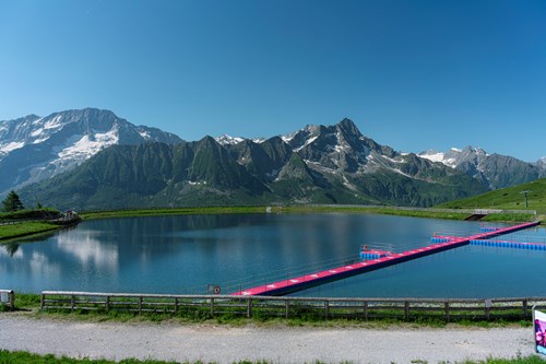 Sul lago di Valbiolo, che si trova in una posizione molto panoramica lungo i pendii del Passo Tonale, una passerella galleggiante ti fa vivere l’emozione di camminare sull'acqua!