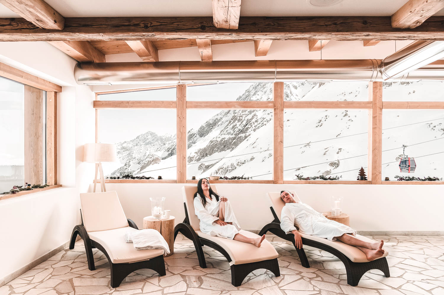Every health spa has its own atmosphere and charm but enjoying a warm indoor sauna while admiring the rocks, ice and amazing scenery at a high altitude is something else.