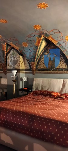 L’appartamento della Famiglia Caparini si trova a Castelpoggio, che domina l’ingresso alla frazione di Poia ed è un punto di riferimento immediatamente riconoscibile per tutti coloro che raggiungono Ponte di Legno. Benché venga comunemente chiamato “castello”, Castelpoggio è in realtà una residenza di villeggiatura del XX secolo costruita con l’aspetto di un maniero medievale e l’appartamento ne riprende i tratti con affreschi e arredi. Generalmente chiuso al pubblico in quanto proprietà privata, l’”Appartamento Caparini” a Castelpoggio si apre eccezionalmente nelle Giornate FAI d’Autunno, offrendo un’esperienza rara e suggestiva. Potrai accedere all’appartamento godendo dell’atmosfera medievaleggiante, oggi arricchito dalla collezione di arredi sacri della famiglia proprietaria.