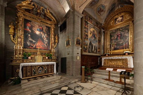 La parrocchia di Vione sorge in posizione panoramica sull’Alta Valle Camonica e rappresenta una delle più belle chiese di tutta la valle. La sua complessità artistica è data delle opere lignee presenti al suo interno perfettamente conservate, con centinaia di statue di santi, angeli, putti, ornati, decori.
