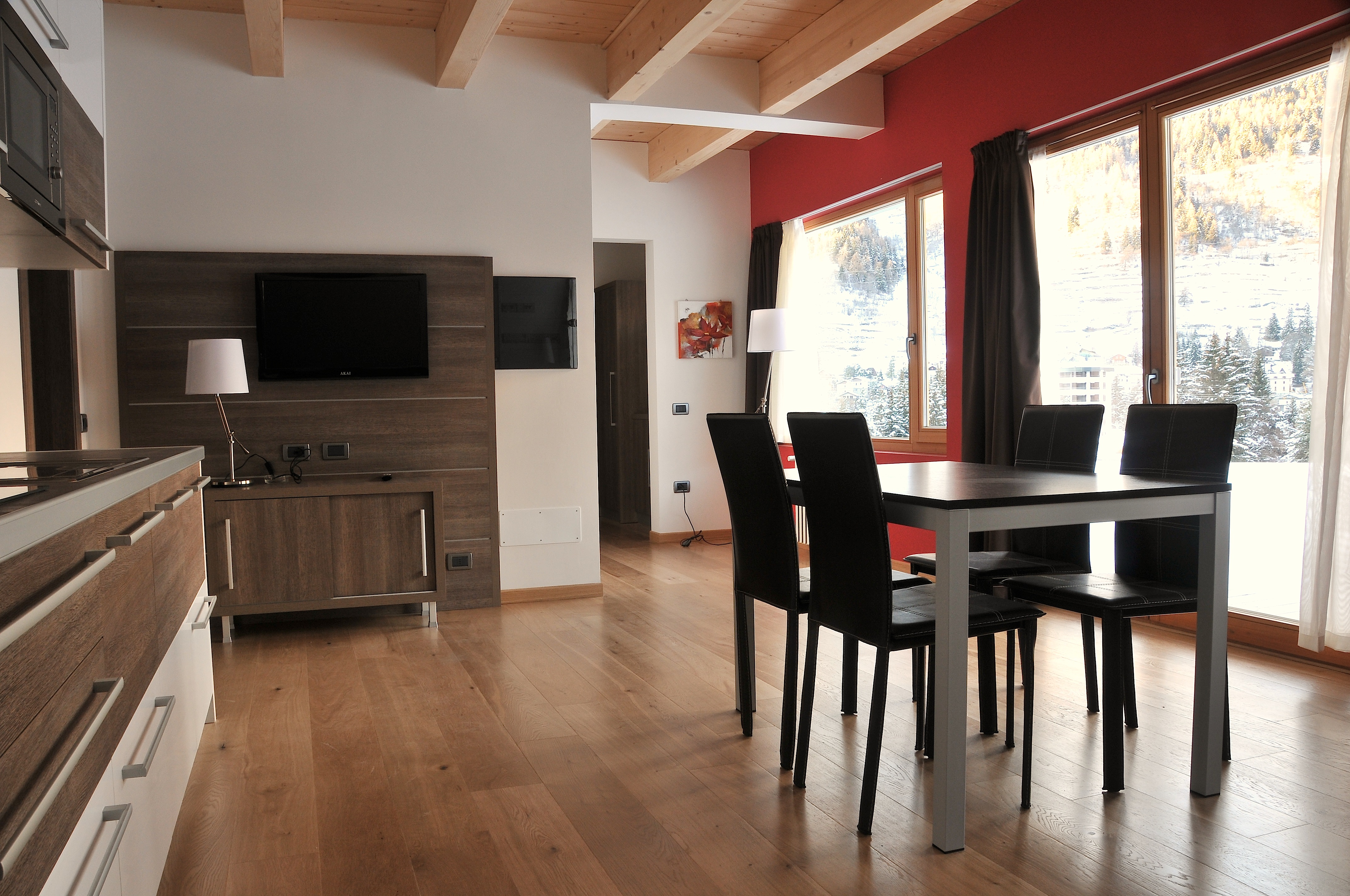 Gli appartamenti di diverse tipologie sono dotati ti zona giorno con TV lcd, divano letto matrimoniale, angolo cottura con forno microonde, frigo, cassaforte e bagno con doccia idromassaggio.