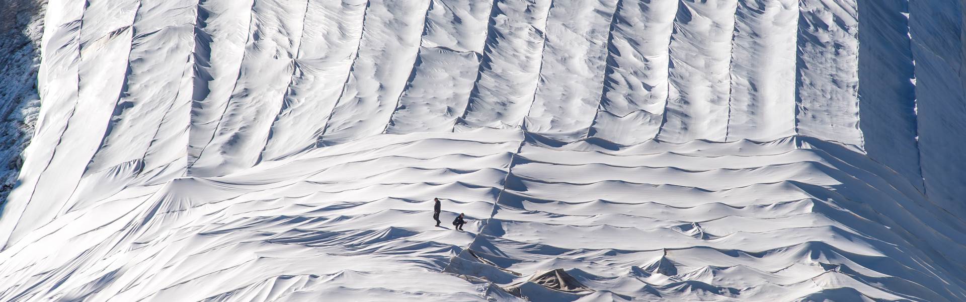 Dal 2008 copriamo il Ghiacciaio del Presena con i teli geotessili, particolari tessuti in grado di ridurre del 50% lo scioglimento estivo di neve e ghiaccio. Siamo consapevoli che, purtroppo, i teli non rappresentano la soluzione al problema: rallentano, ma non bloccano, la fusione del ghiacciaio. Nonostante questa protezione, e nonostante ogni inverno sul ghiacciaio si depositino 350.000 má¶ľ di neve, registriamo infatti una perdita annuale di 600.000 má¶ľ di massa glaciale.