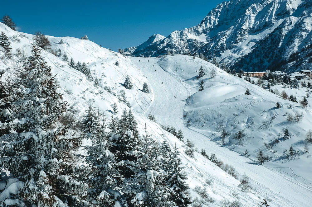 La ski area di Ponte di Legno sembra uscita da un libro illustrato: distese di pini e abeti coperti dalla neve, piste che corrono tra i tronchi e panorami mozzafiato che si aprono all’improvviso.